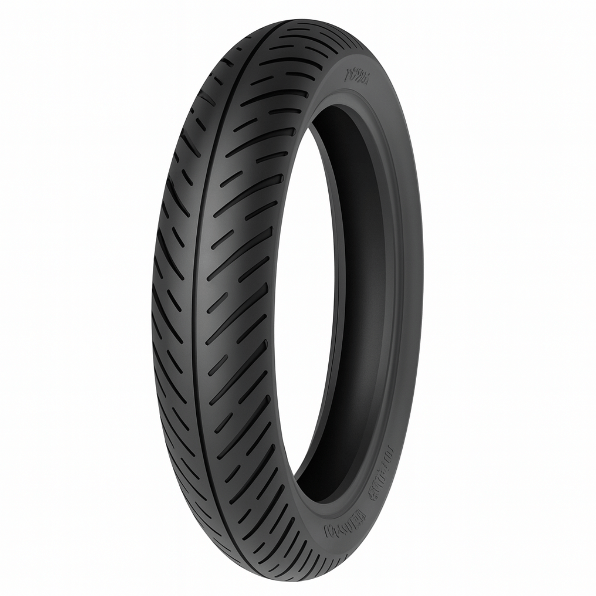 Con diseño en “V” para máxima tracción y estabilidad. Su patrón optimizado ofrece excelente drenaje en superficies mojadas y un rodaje suave y silencioso en ciudad. Fabricada con compuesto de larga duración, brinda un equilibrio perfecto entre rendimiento, seguridad y confort para scooters y motos urbanas.