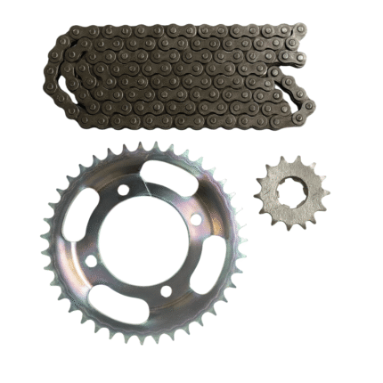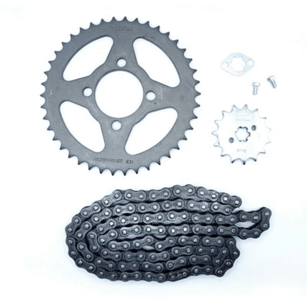 Kit de arrastre original Bajaj para Pulsar 180, incluye piñón de 15 dientes, catalina de 44 dientes y cadena reforzada. Máximo rendimiento, durabilidad y ajuste perfecto.